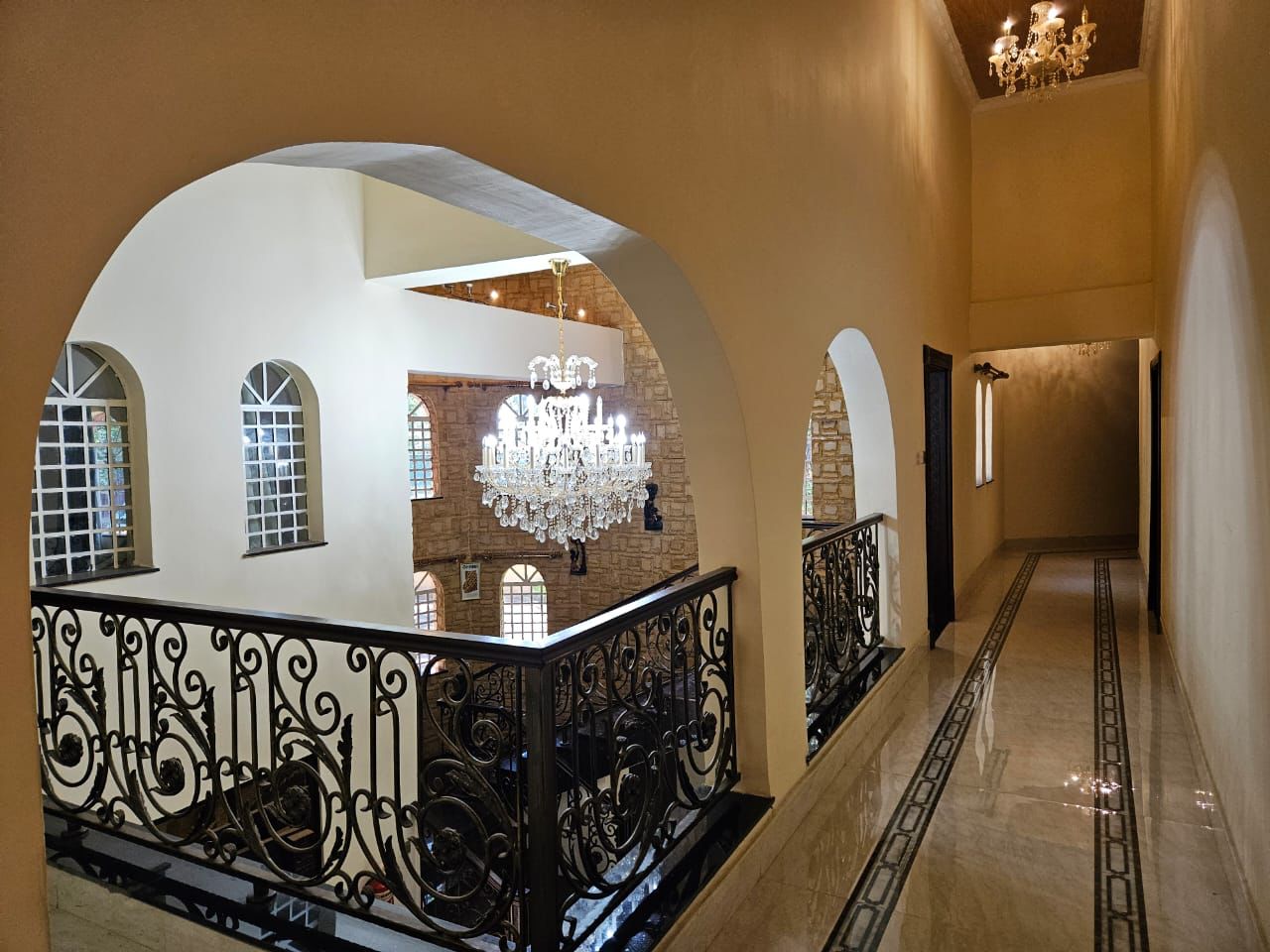 The fully fitted kitchen includes a pantry and is designed for efficiency. Moreover, laundry and utility areas provide practicality for large-scale household management. Balconies and terraces offer outdoor relaxation and scenic views.