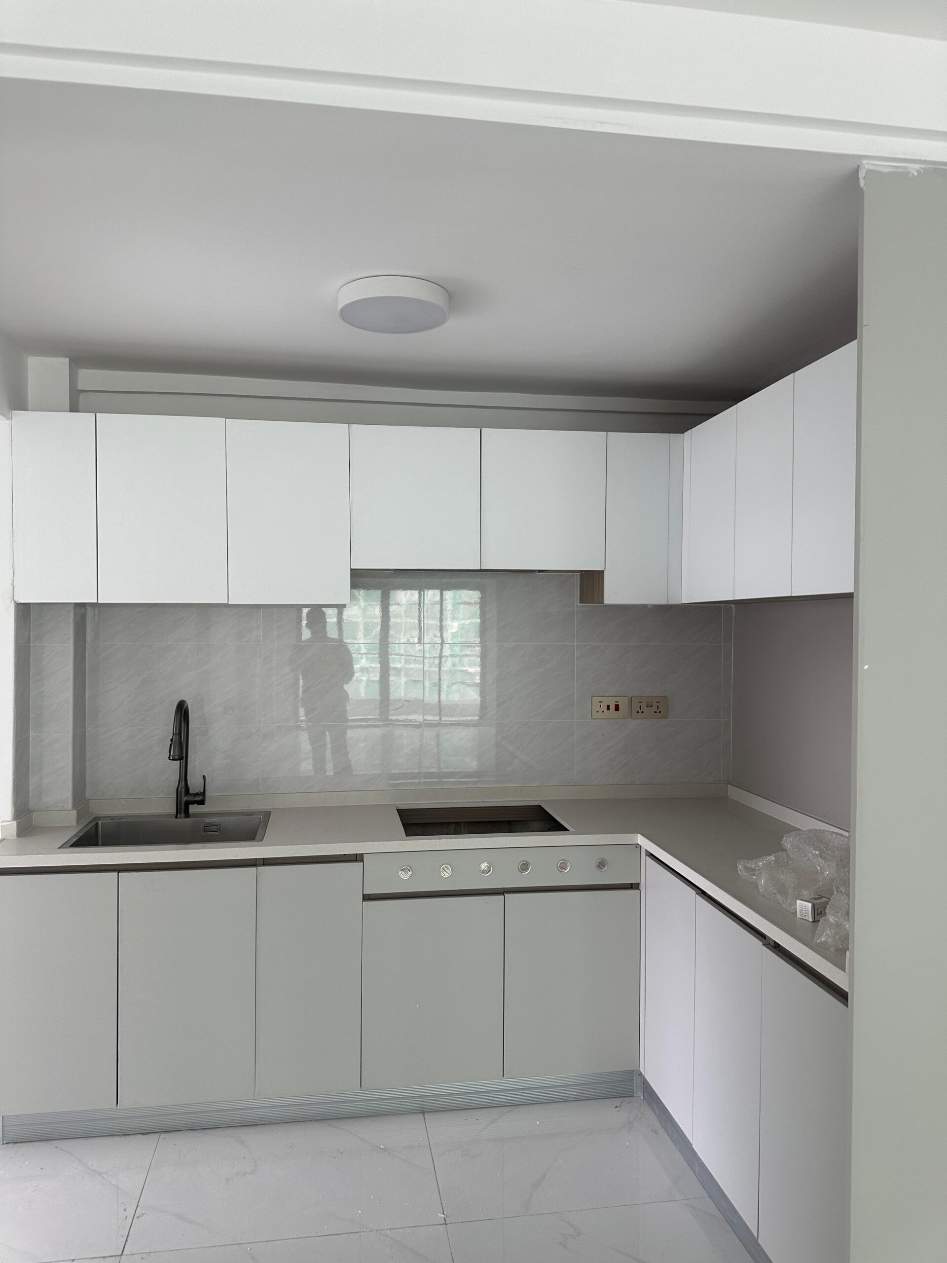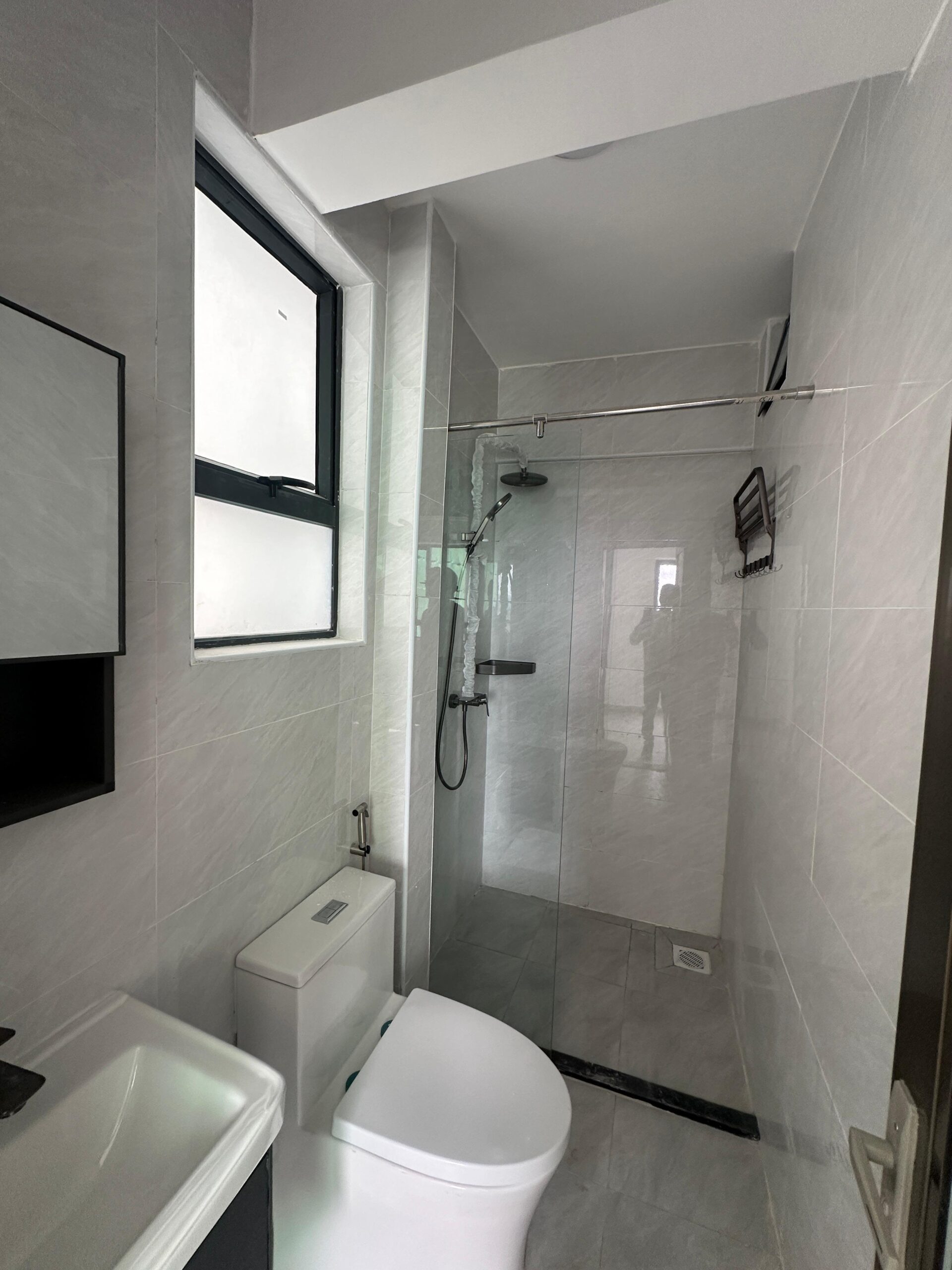 Instant shower heaters, tiled splashbacks, and sink areas