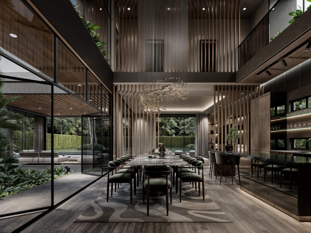 Each villa features five ensuite bedrooms designed to maximize privacy and comfort. A dedicated home office provides a perfect space for work, while the family/TV room ensures shared moments with loved ones. The expansive lounge and dining area overlook the garden, creating a seamless indoor-outdoor flow.