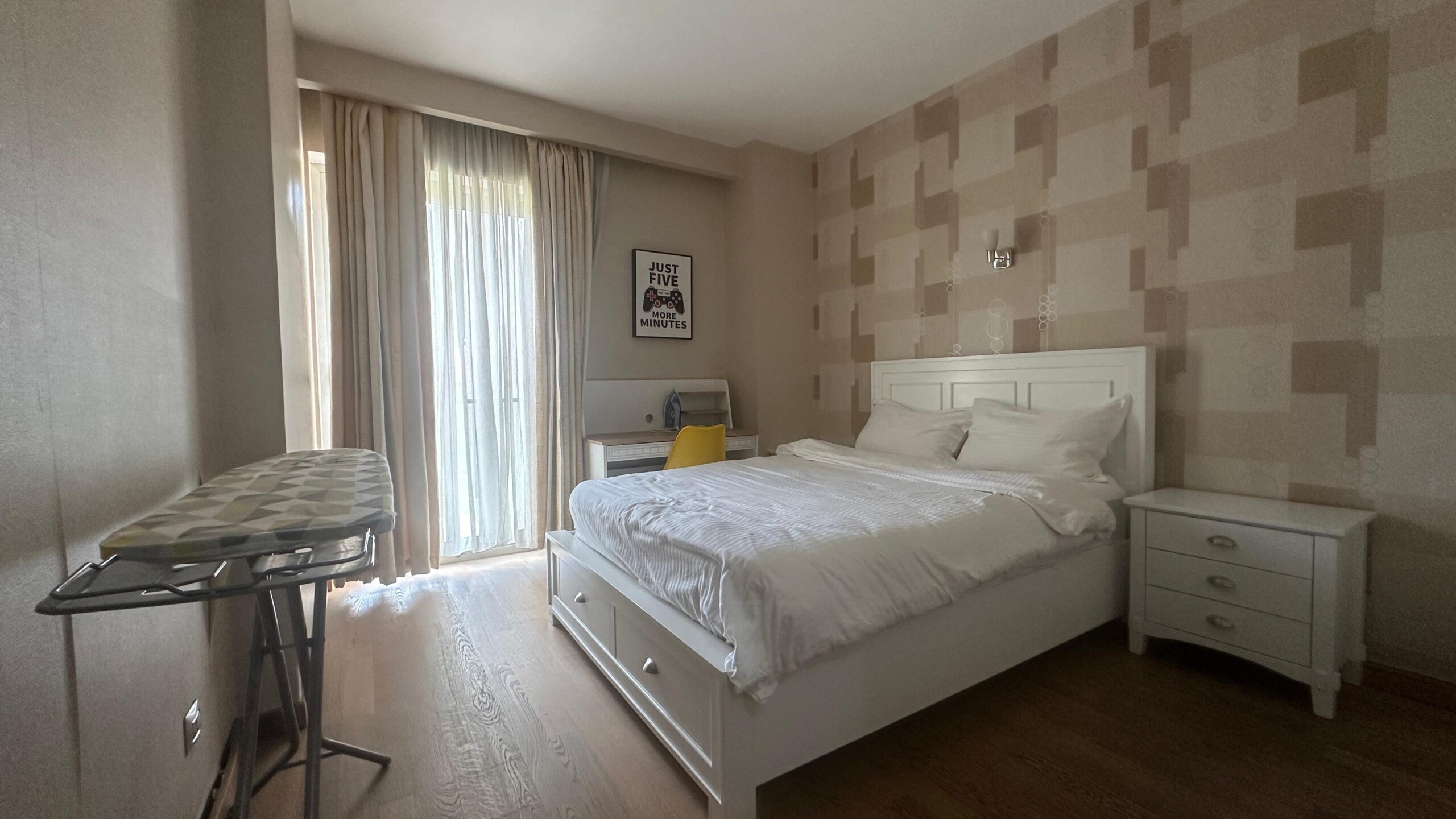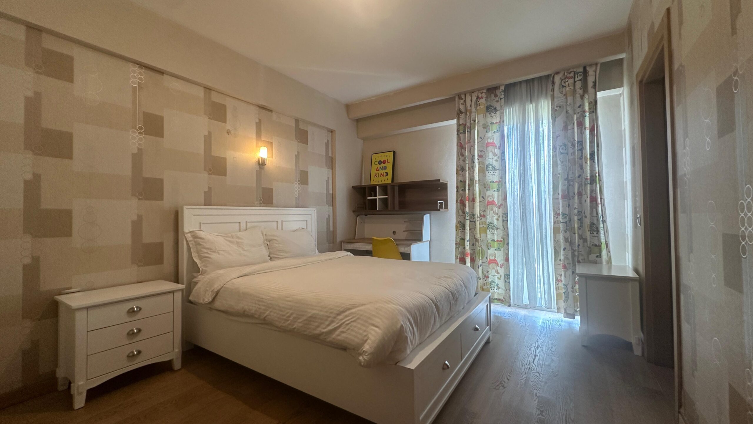 The apartment is fully furnished, making it move-in ready for families, couples, or professionals.
