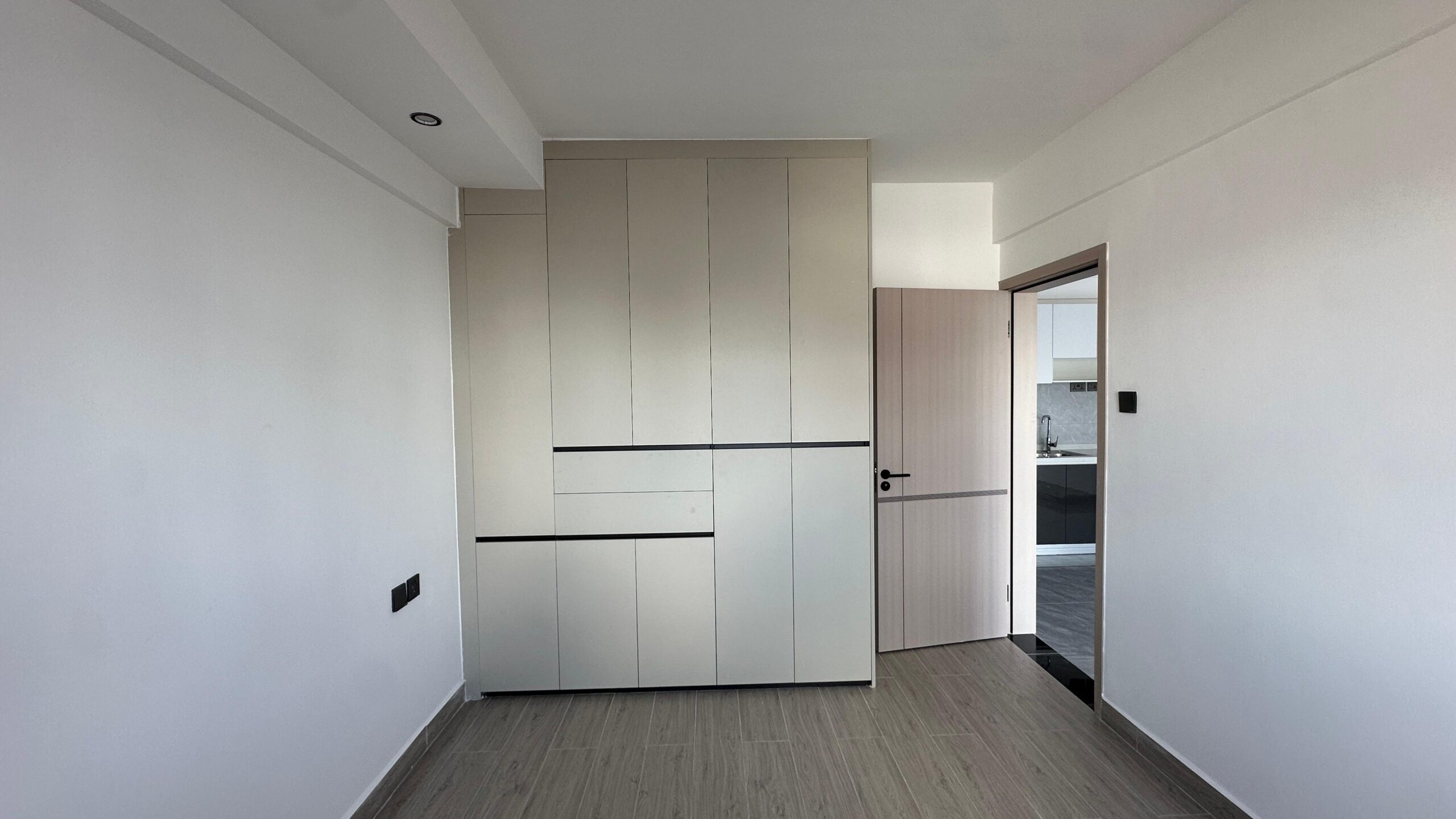 The bedroom is spacious, featuring built-in wardrobes and premium finishes that ensure both comfort and privacy. The elegant bathroom complements the apartment’s contemporary aesthetic, providing a calm, relaxing space after a busy day.